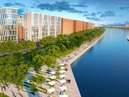 Напомним, что проект предусматривает возведение 1 500 000 квадратных метров недвижимости, из которых почти 800 000 «квадратов» придется на жилые дома. Объем торговых площадок составит около 240 000 квадратных метров. Центром жилого комплекса станет бульвар, где будут сосредоточены основные инфраструктурные объекты. В частности, здесь будут размещены: универмаг, музей, гостиница и театры.