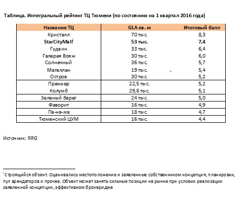 Специалисты RRG подготовили рейтинг тюменских ТЦ