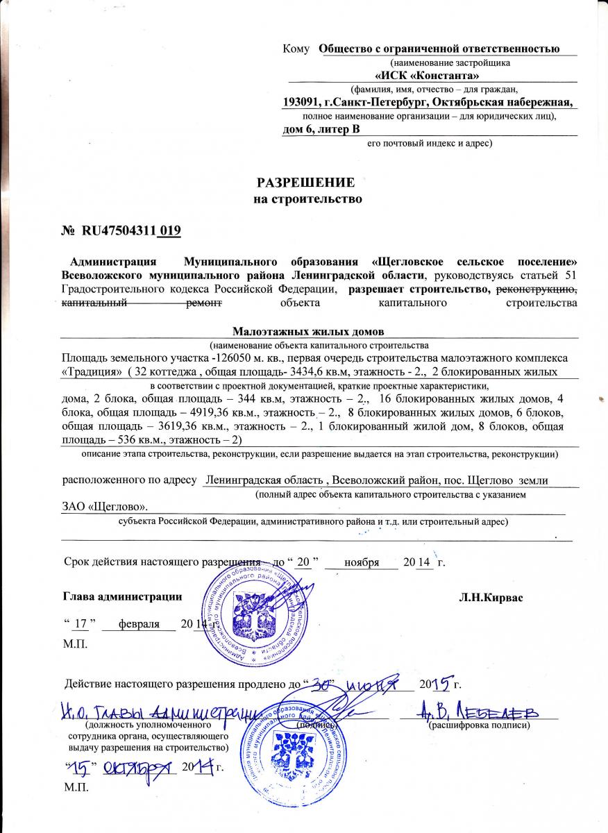 ИСК «Константа» информирует своих клиентов о получении кадастровых паспортов на земельные участки первой очереди возведения комплекса, который располагается в поселке Щеглово Всеволожского района.